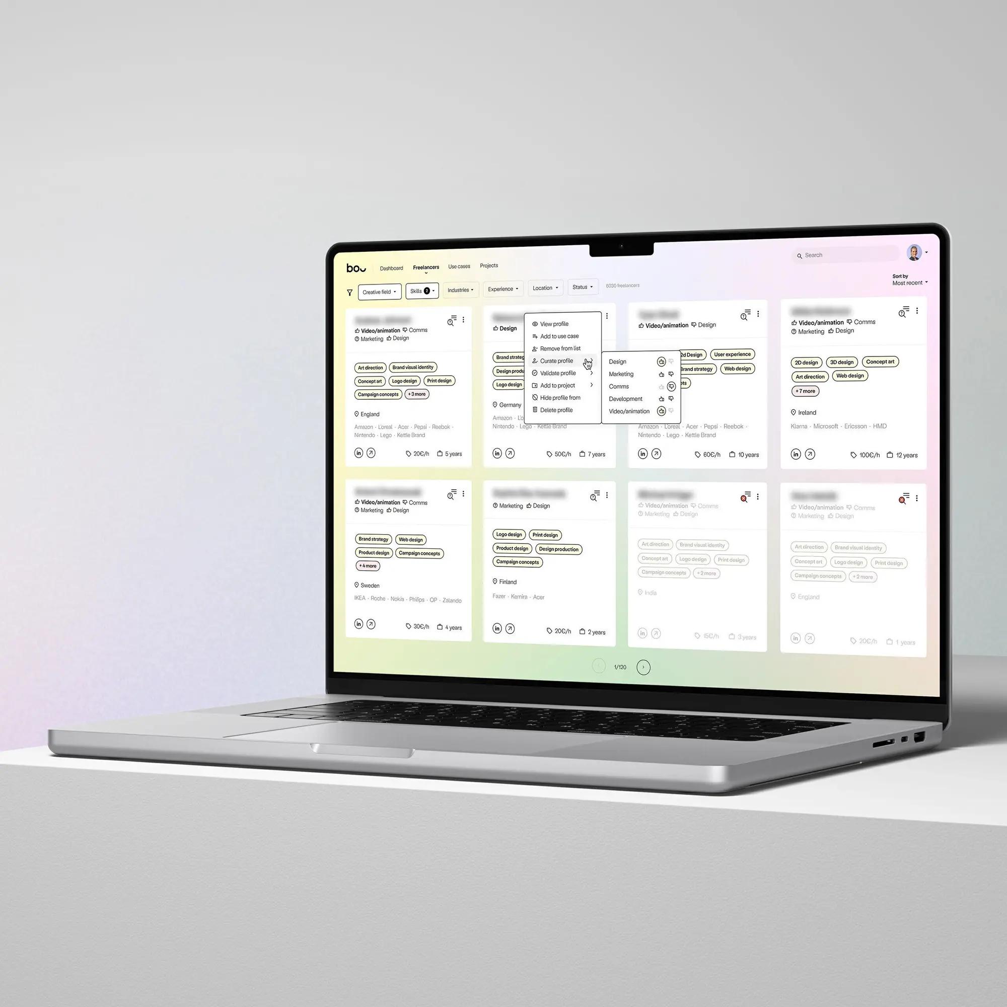 Existing tools weren’t cutting it, so we built our own tech for finding world-class freelancers, boutique agencies, and creative studios, and matching them with world-class brands. It’s not just a matchmaking tool, but a curation platform that our in-house team uses to evaluate who’s exactly the right person or team for the job.