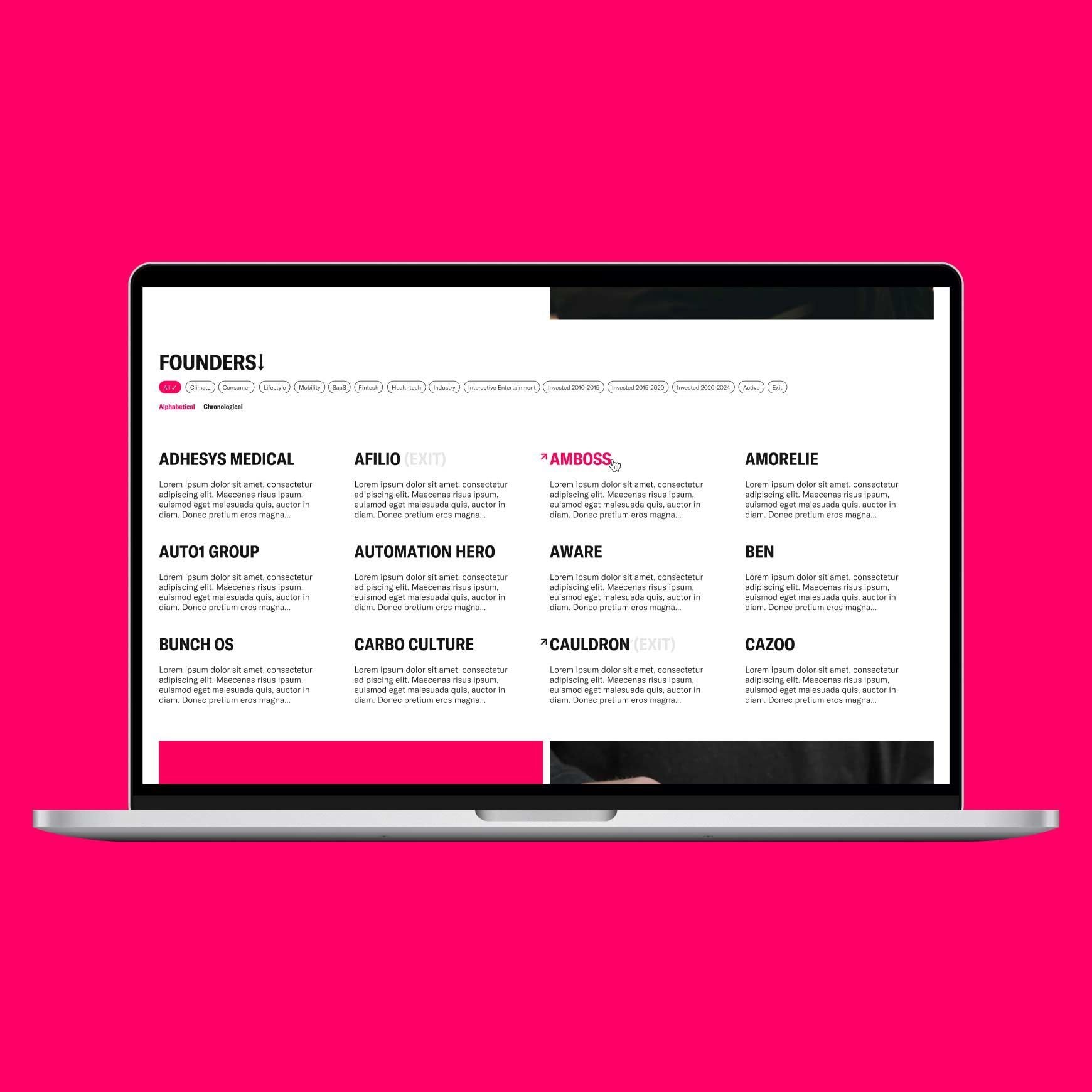 Cherry wanted to level up their brand strategically, visually, and verbally. We started from the deep end and did our research, using one-on-one interviews, desktop research, and competitor analysis as the primary methods. The findings led us to navigate a few potential directions, but eventually, all roads led to the very core of Cherry: putting founders first. Because that’s how you build companies that last – like their investors have built Spotify, Uber, and Zalando, or like their portfolio founders have built Flixbus, Tacto, and Mondu.